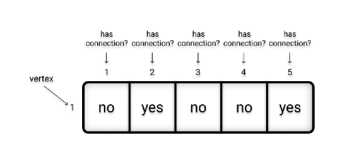 Modeling the relationship between vertex 1 and other vertices in this graph using an array, we have: