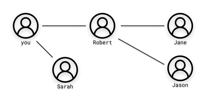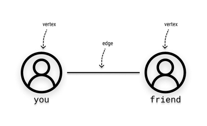 Simply put, we can understand a graph as a set of relationships or connections. How so? Think of a social network you use. Now think of a person connected to you through this social network. Representing this simple relationship using graphs, we have the following: