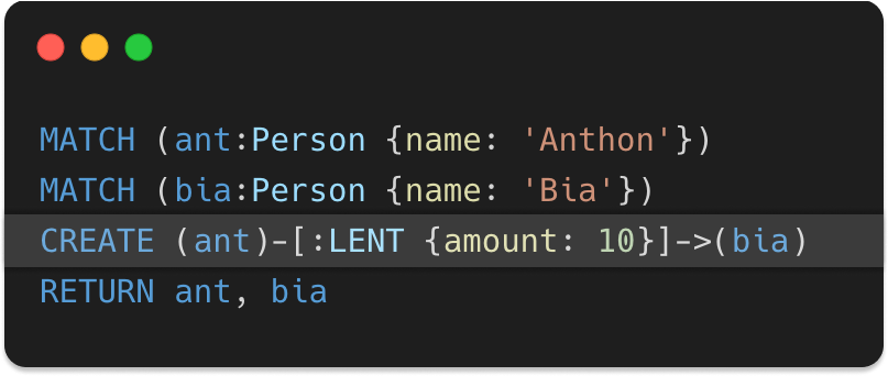 Also, if you need a reference to the relationship as we did for the nodes, it can be placed before the colon, exactly as the node references.