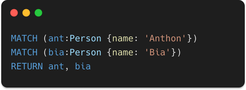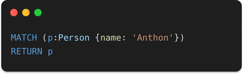 Person having a property {name: 'Anthon'} this MATCH clause would have returned all of them.Easy and intuitive, right?
