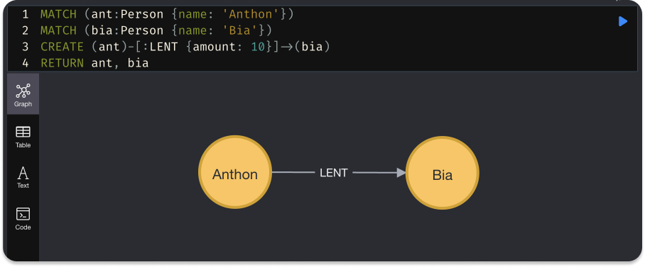 As you might have guessed, it's used to add new data to the graph. In this case, it creates a new node representing a person. Think of it as inserting a new record into a database. - Node labels: